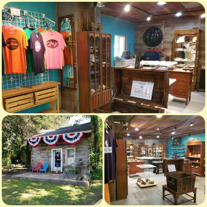 The log cabin is a Historic log cabin built in the 1850s. You will find a variety of unique gifts, rocks, minerals, jewelry and souvenirs.
